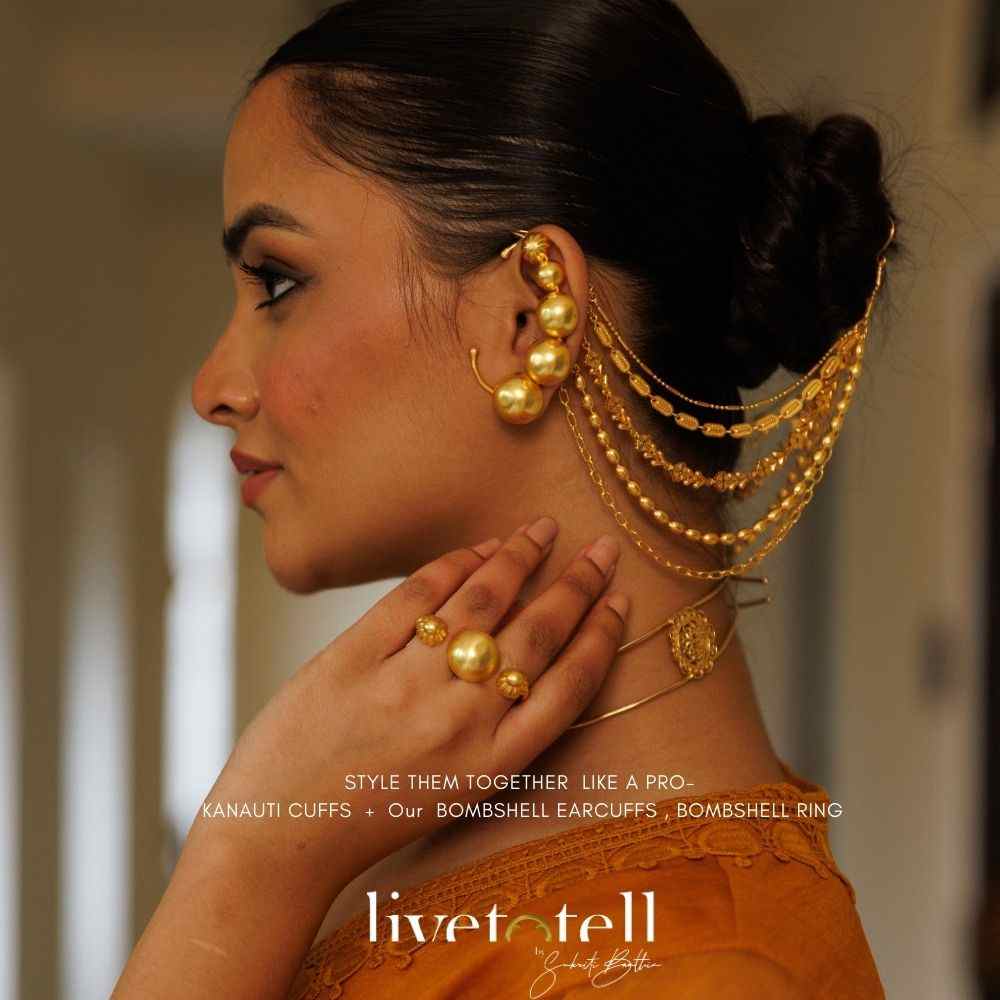 Embrace the ethereal with the Apsara Kaan-Chain, a statement of woven artistry reimagined for the modern ear. The Kaan-Chain, also known as Kaanauti or ear-chain, boasts a rich history in India, traditionally adorning the ears and often extending to the hair. These delicate chains were a significant part of a woman's adornment, symbolizing grace and femininity, and were often seen in royal courts and across various regional traditions.