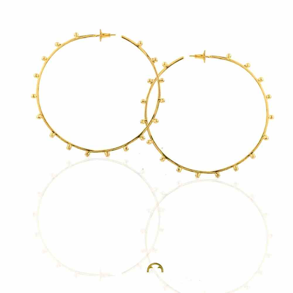 Experience inner harmony with the Chakra Hoops. These meticulously handcrafted earrings, plated in radiant 18k gold, feature a classic circular silhouette embodying the cyclical nature of life's energy centers. Delicate miniature Rawa ball elements add a touch of traditional artistry to this modern design, making them unique conversation starters.