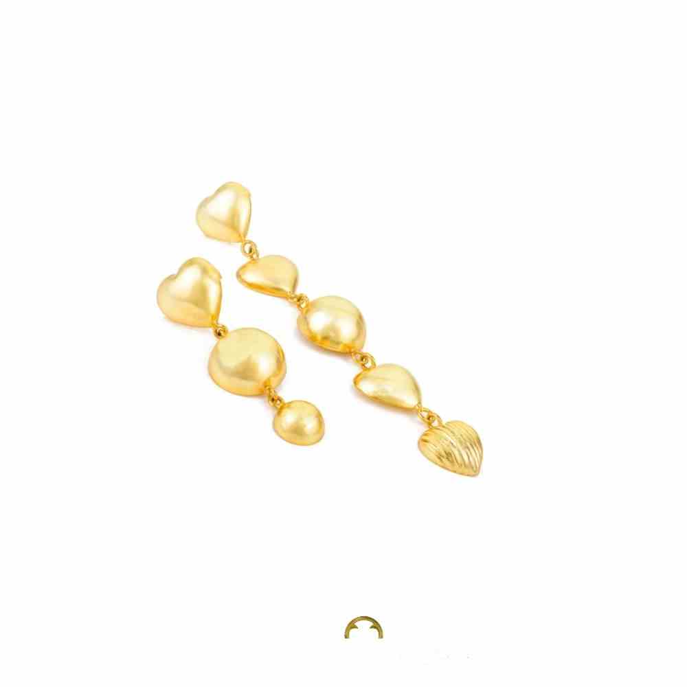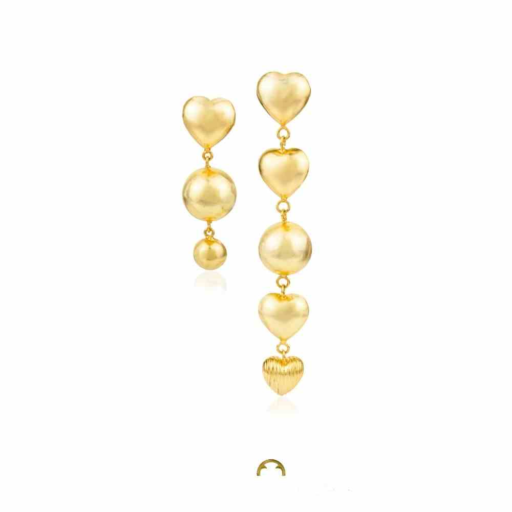 Expertly crafted spheres and hearts dance together in a captivating blend of geometric shapes finished in 18k gold plating.