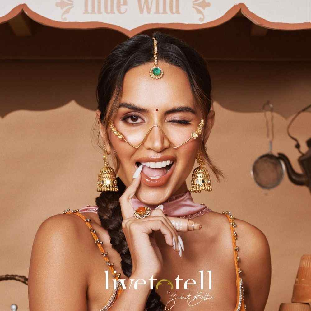 Finished in premium 18k gold plating, each rosette is individually hand-set, creating a radiant halo effect that catches light and attention at every turn. Inspired by both Indian floral motifs and avant-garde couture, Rosette Eyes celebrate vision — literal and figurative.