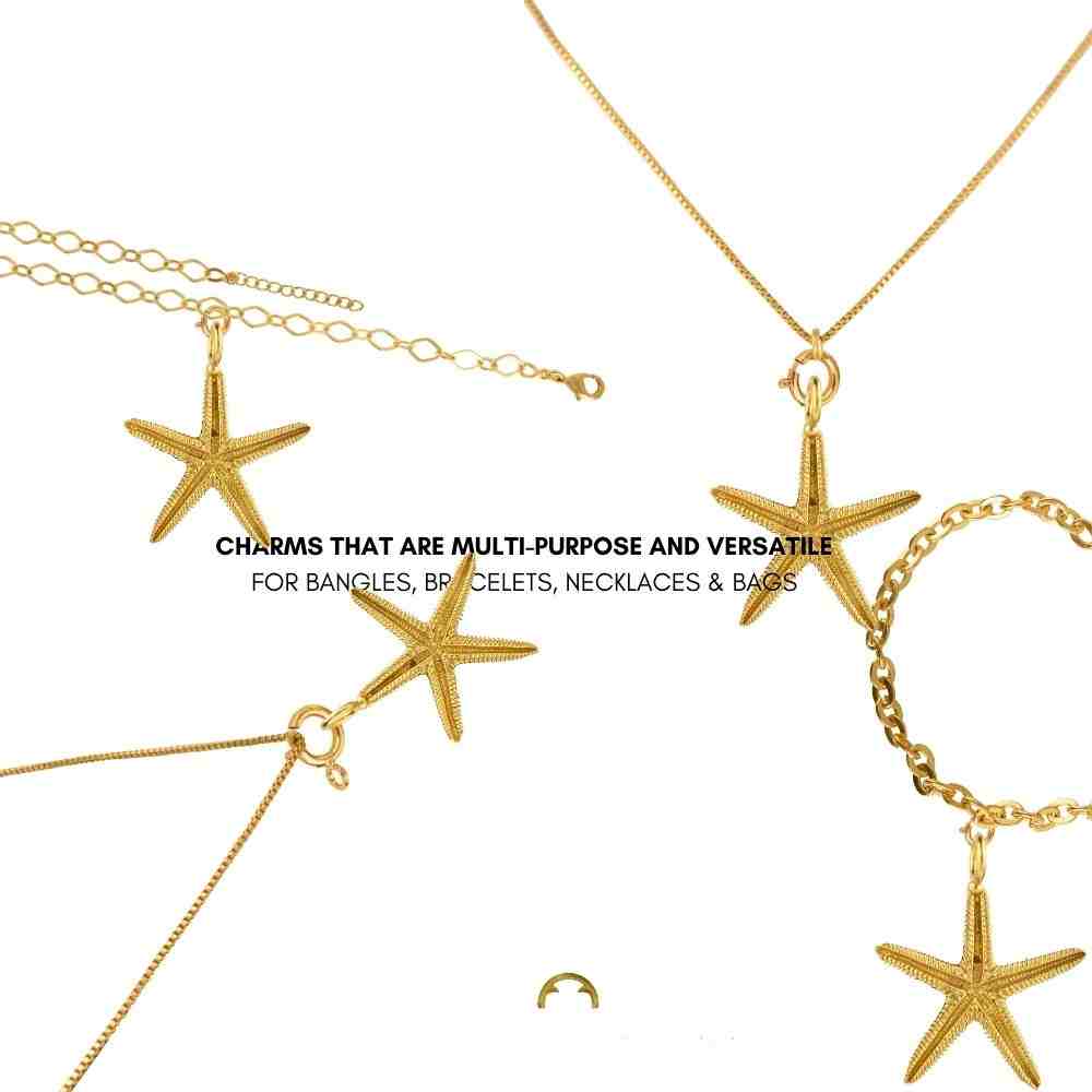 Wanderlust meets wonder in the Starfish Pendant & Charm, a delicate gold-plated accessory that captures the essence of sun-soaked getaways. Whether you're island-hopping or simply daydreaming of your next tropical escape, the Starfish Pendant & Charm will have you feeling like you're just steps away from the shore.