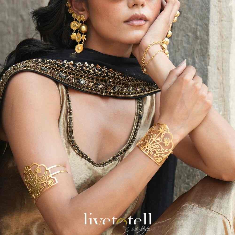 (Jaipur cuff, statement bracelet, armlet, Indian bracelet, traditional cutwork, Jaipur jewelry, artisanal bracelet, unique bracelet, designer bracelet, versatile jewelry)